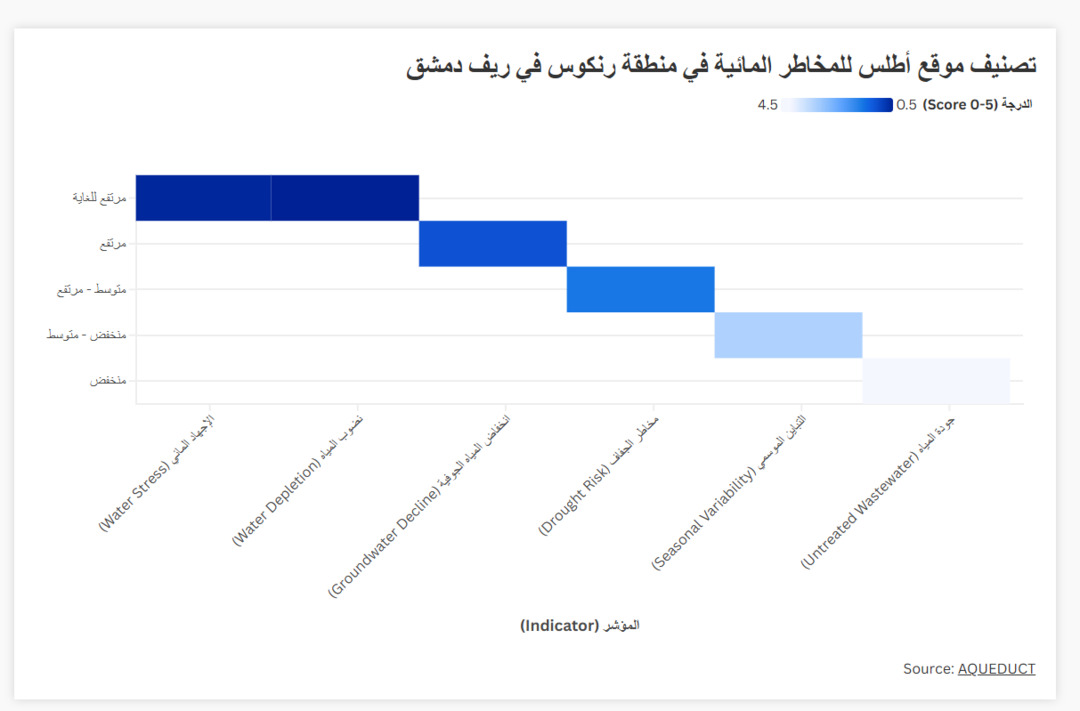 وصنف أطلس المخاطر المائية منطقة رنكوس بـ "المرتفعة للغاية"، في مؤشر ندرة المياة.