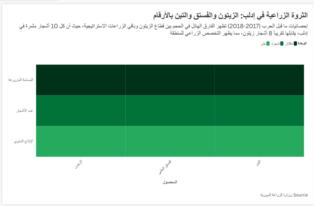 الثروة الزراعية في إدلب: الزيتون والفستق والتين بالأرقام