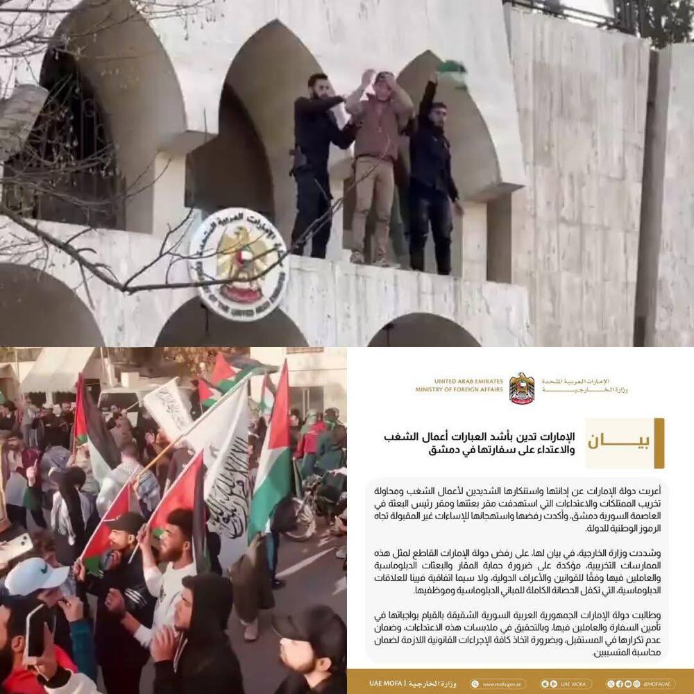 الإمارات تدين الاعتداءات على بعثتها بدمشق