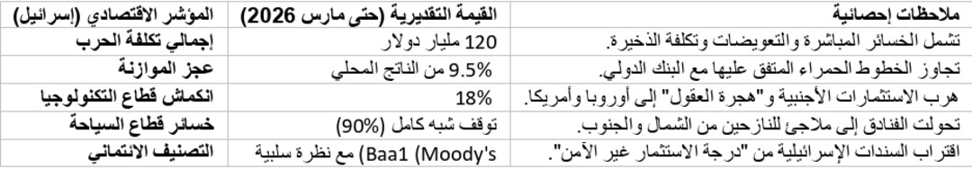 ثانياً: العلاقة السامة.. التي حولت إسرائيل في الوعي الأمريكي والدولي من "حليف" إلى "مرض سرطاني"، يُنهك جسد الإدارة الأمريكية. وجعلت عهد "ترامب" المُتخبط أسوأ قائد في تاريخ أميركا، إذ بدا أن القرار يُكتب في تل أبيب ويُوقع في واشنطن، مما أفقد الولايات المتحدة ثقلها العالمي وجعل نفوذها يتآكل تدريجيًا تحت وطأة هذا الارتباط المختل، والأرقام لا تكذب، بلغةِ "النزيف" لا لغةِ "النمو"، حيثُ تحولت الترسانة العسكرية إلى ثقبٍ أسود يبتلعُ رفاهية الشعوب." وفق (صندوق النقد الدولي، بلومبرغ، وتقارير مراكز الأبحاث في "تل أبيب" وواشنطن) عن حالة "التفكك الهيكلي" في منظومة القطب الواحد. ولنرى دخول الاقتصاد الإسرائيلي "أجهزة التنفس الصناعي "في الربع الأول من عام 2026 نفقاً مظلماً لم يشهده منذ عام 1948. كما تُعاني إسرائيل من "شلل القوى العاملة" بسبب استمرار استدعاء الاحتياط، مما كلف قطاع البناء والزراعة خسائر شهرية تقدر بـ 2.5 مليار دولار.