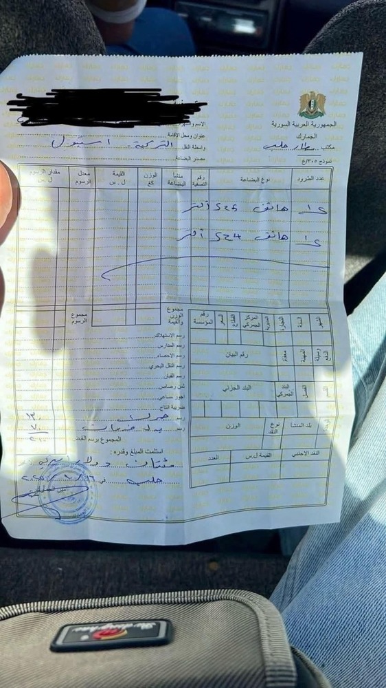 Social media users circulated an official receipt from Aleppo Customs, claiming it requests a $200 fee to allow entry of two phones for a citizen returning from Germany.