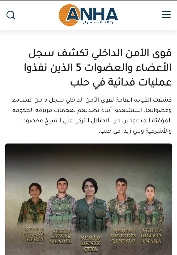 الإعلام الموالي لقسد وصفهم بـ "الفدائيين"، وأشار إلى تصريحات المركز الإعلامي للقوى الأمنية التي تفيد بأن زينب كردلي من عفرين، وداد معمو من الحسكة، روجكر نوحي من الدرباسية، ومريم حورو من عفرين، قادهم داوود محمد من كوباني/عين العرب. وقد ارتكزوا في هذه العمليات على "فلسفة" عبد الله أوجلان، قائد حزب العمال الكردستاني، والتي تُعتبر غير قابلة للهزيمة.